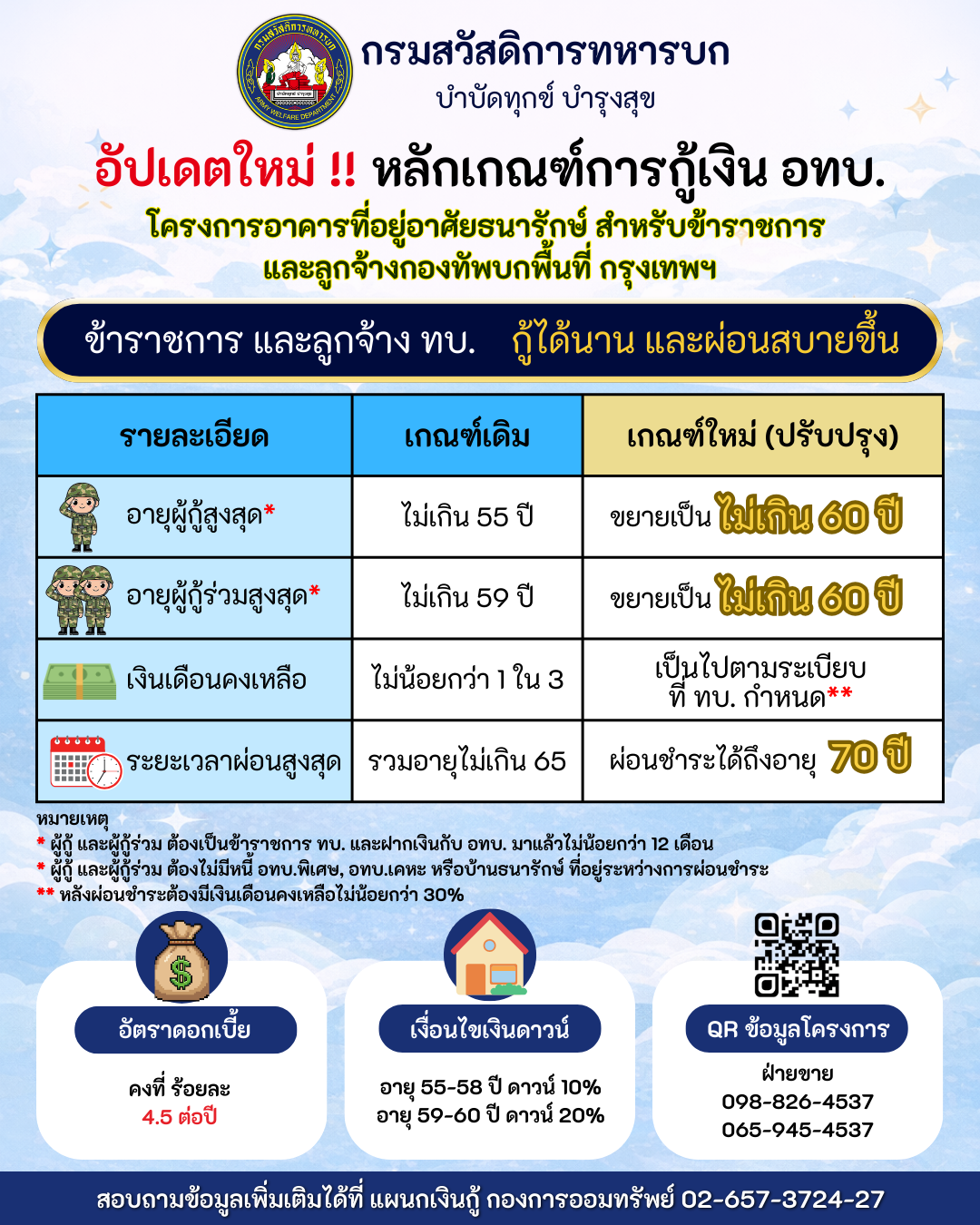 120 งวด (10 ปี) ทั้งนี้ขึ้นอยู่กับอายุผู้กู้